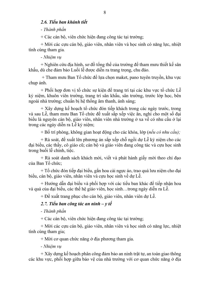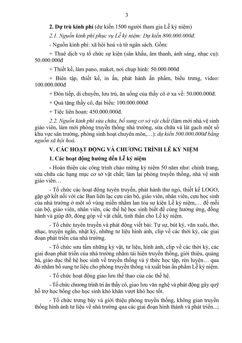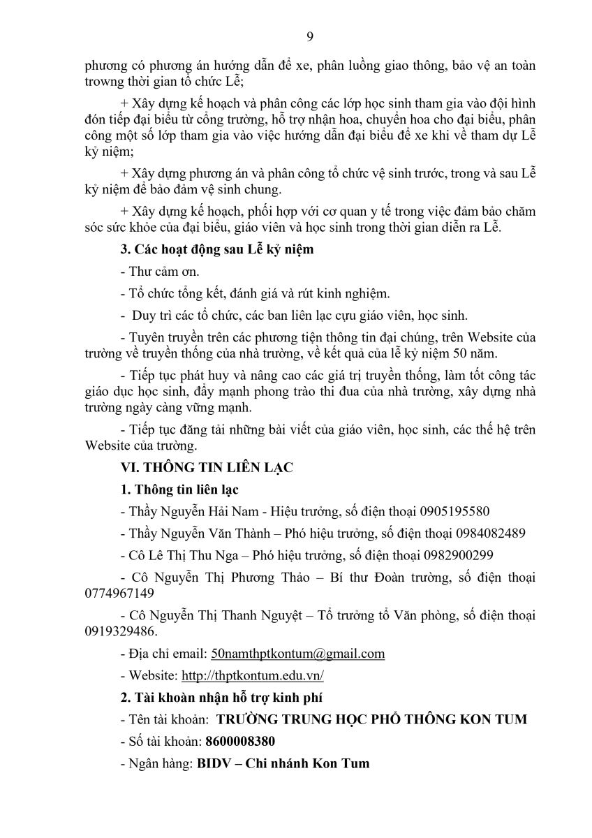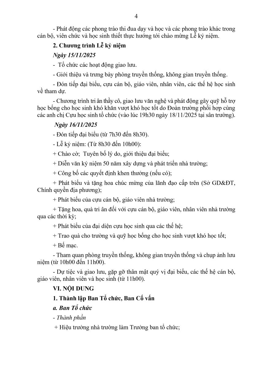 KẾ HOẠCH TỔ CHỨC LỄ KỶ NIỆM 50 NĂM XÂY DỰNG VÀ PHÁT TRIỂN TRƯỜNG THPT KON TUM (1975 – 2025)