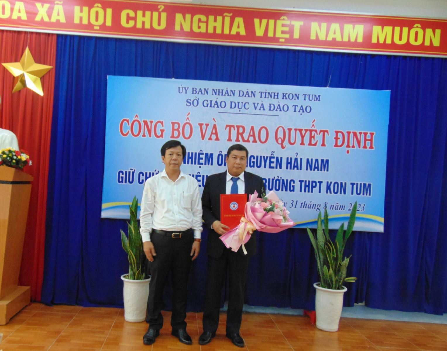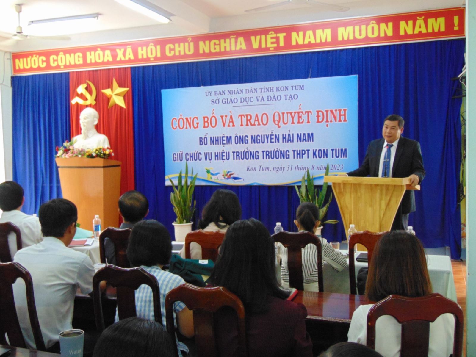 Ngày 31/08/2023, Sở Giáo dục và Đào tạo (GDĐT) tổ chức công bố và trao quyết Điều động, bổ nhiệm Thầy Nguyễn Hải Nam, giữ chức vụ Hiệu trưởng Trường Trung học phổ thông Kon Tum.