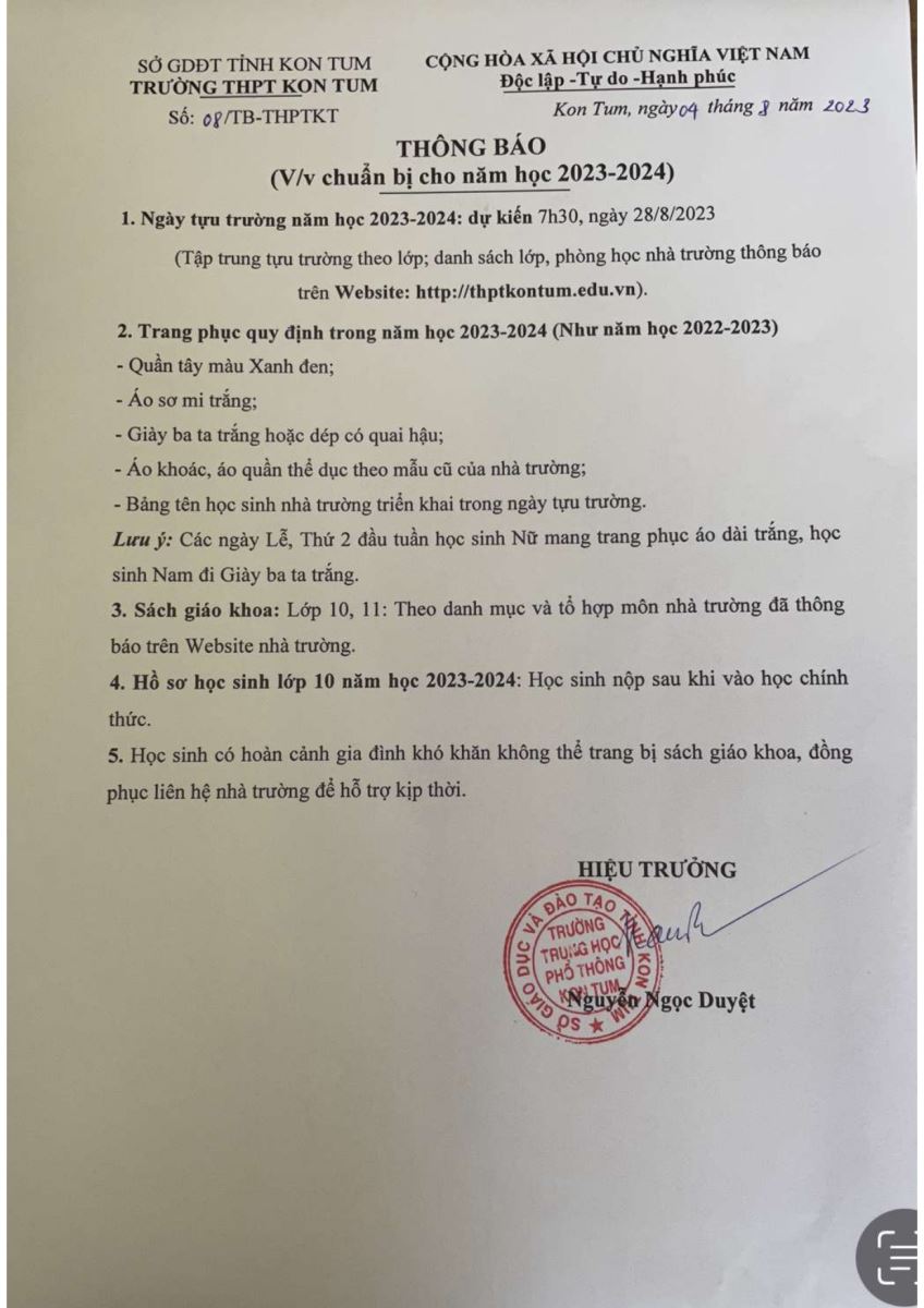 THÔNG BÁO V/V CHUẨN BỊ CHO NĂM HỌC 2023 - 2024
