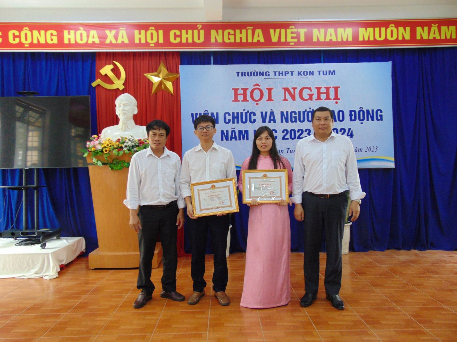 Cũng trong Hội nghị, đại biểu đã trao tặng bằng khen của Tổng Liên đoàn lao động Việt Nam cho cô Trần Thị Thùy Linh vì đã đạt thành tích xuất sắc trong phong trào “Học tập và làm theo tư tưởng, đạo đức, phong cách Hồ Chí Minh” giai đoạn 2021-2022; trao bằng khen cho tập thể nhà trường vì đã đạt thành tích xuất sắc trong phong trào “Học tập và làm theo tư tưởng, đạo đức, phong cách Hồ Chí Minh” giai đoạn 2021-2022; bằng khen cho tập thể nhà trường vì đã đạt thành tích xuất sắc trong phong trào thi đua yêu nước và hoạt động công đoàn năm học 2022-2023; trao bằng khen cho thầy Đỗ Văn Doanh vì đã đạt thành tích xuất sắc trong phong trào thi đua yêu nước và hoạt động công đoàn năm học 2022-2023; trao bằng khen của chủ tịch UBND tỉnh cho thầy Hà Quốc Dũng và cô Hồ Thị Mai vì đã có thành tích xuất sắc trong công tác giáo dục và đào tạo năm học 2022-2023; trao tặng danh hiệu chiến sĩ thi đua cấp cơ sở cho 14 thầy cô; trao tặng giấy khen của Công đoàn ngành giáo dục cho 6 tập thể và 9 cá nhân.