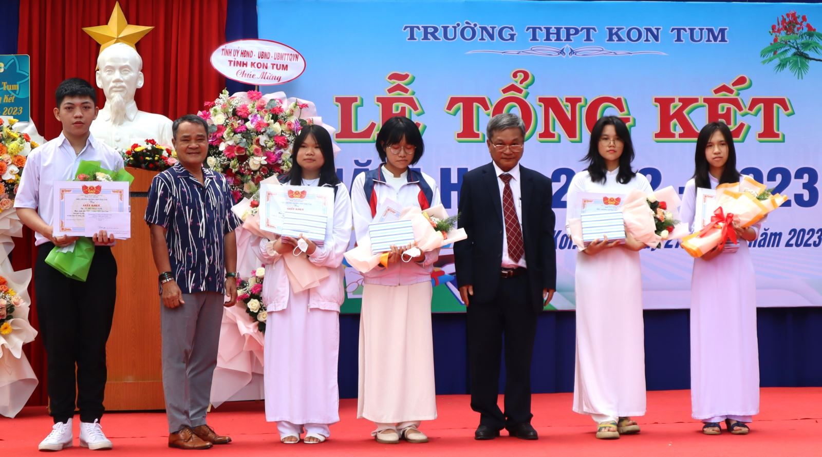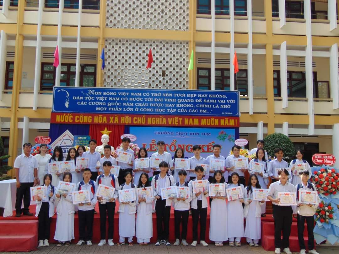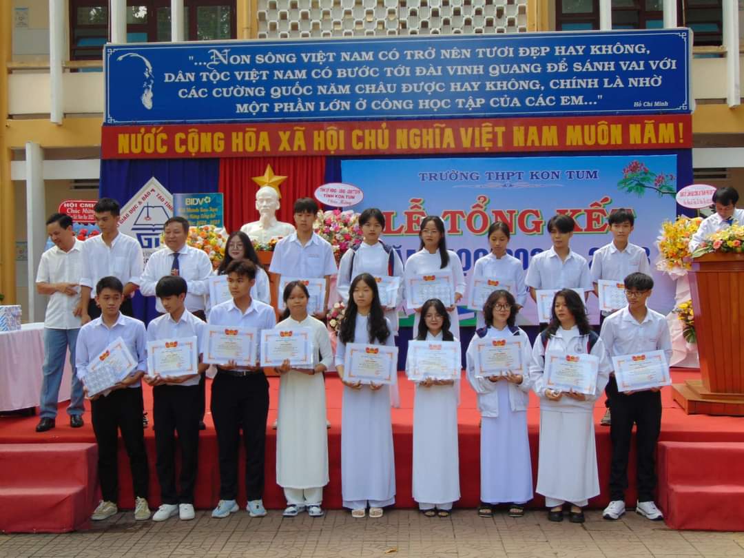 Tại buổi Lễ tổng kết, Trường THPT Kon Tum trao thưởng, quà lưu niệm cho các em học sinh có thành tích xuất sắc trong học tập, rèn luyện và học sinh đạt giải trong các cuộc thi do trường, tỉnh, khu vực và quốc gia tổ chức...
