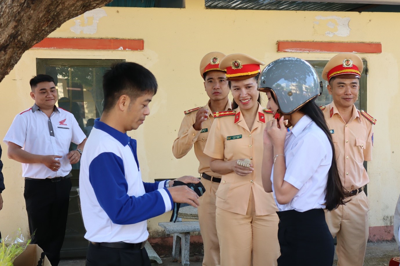 Đặc biệt, buổi tuyên truyền còn chú trọng trang bị cho học sinh kỹ năng lái xe an toàn như: giữ khoảng cách an toàn, làm chủ tốc độ, quan sát và xử lý tình huống khi tham gia giao thông, tuân thủ tín hiệu đèn giao thông, không sử dụng điện thoại khi lái xe. Các em cũng được hướng dẫn cách điều khiển xe gắn máy, xe máy điện đúng quy định và an toàn.